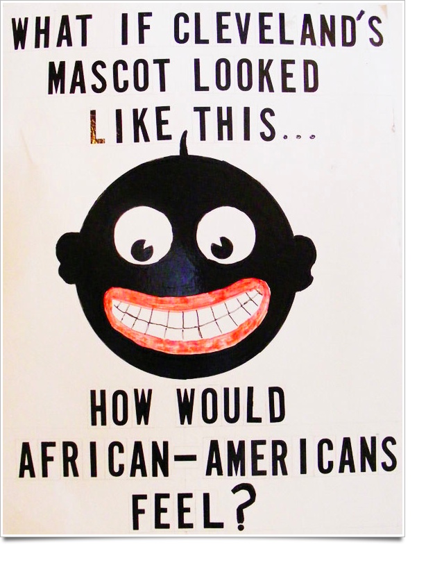 But the height of paternalistic racism is when the ball club’s spokesman Bob DiBiasio states the matter of whether the image is offensive is an “individual perception issue.” Hey Bob, your “perception” of what’s offensive to another race of people really doesn’t matter. The only legitimate voices in this discussion belong to Native Americans… and they say Chief Wahoo offends them. End of story.