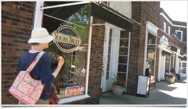Your nose will tell you where the coffee shop is and you can take your specially roasted cup a’ jo and breakfast pastry outside to lovely café table on the sidewalk. Now that the caffeine has kicked in it’s time to shop.