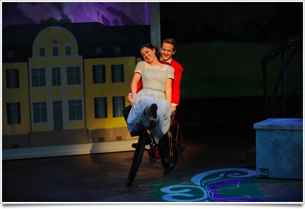 Among several highlights were the choreographed duet (“Sixteen Going on Seventeen”) between a lyric Anders and an earnest Rolph (Kyle Kemph) that involved at one point riding a bicycle around stage and singing in tune at the same time. Awesome. Kemph’s restrained gesture of love when he didn’t give them away in the last scene was also touching. Larry Nehring’s Captain von Trapp was elegant, but at times a little too distinguished to seem smitten with Maria.