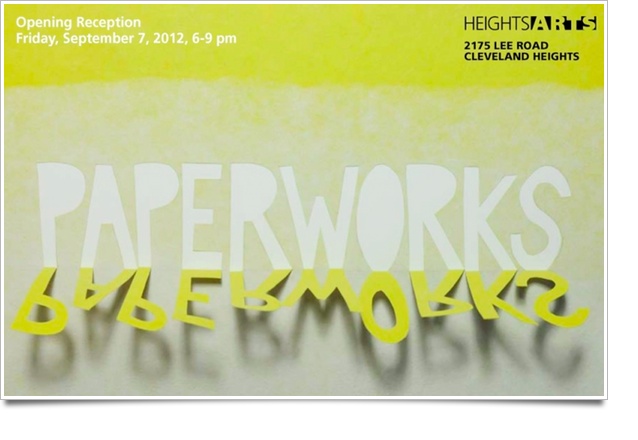 Paperworks is a new exhibition @ Heights Arts that “illuminates paper as a carrier of artists’ symbols and as a medium in itself with processes including drawing, painting, cut paper, collage, sculpture and pulp.”