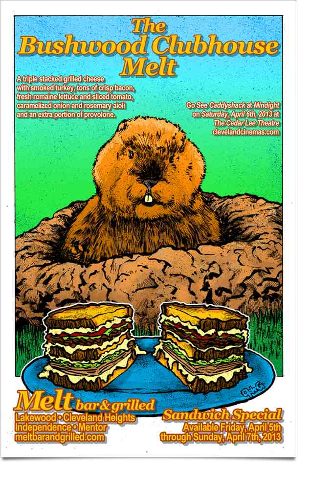 This sandwich special is only available Fri 4/5 – Sun 4/7 to celebrate the screening of “Caddyshack” at Midnight on Sat 4/6 at the Cedar Lee Theatre (http://www.ClevelandCinemas.com).