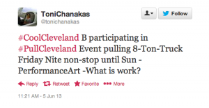 Congrats! Every Wednesday we ask you to tweet the event that you are most excited for with the hashtag #CoolCleveland. If we like your tweet the most, then you can win free publicity for your event! @ToniChanakas won this week’s CoolCleveland Hashtag Contest with her tweet: