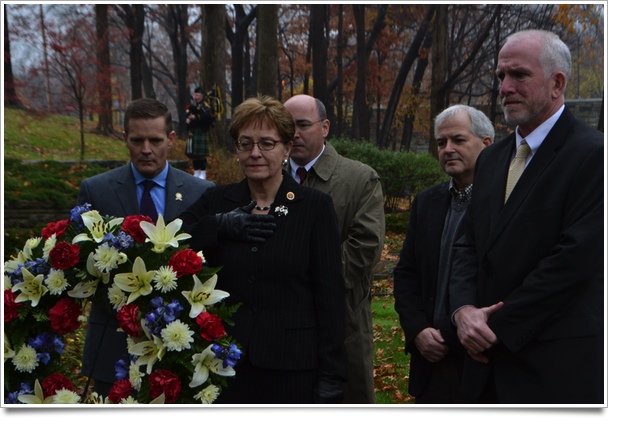 On a rainy morning last Friday, Congresswoman Marcy Kaptur, state representative Mike Foley, and Cleveland city councilmen Kevin Kelley, Marty Sweeney, and Martin Keane trekked to the east side to lay a wreath in Kennedy’s memory at the Irish Cultural Garden in Rockefeller Park.