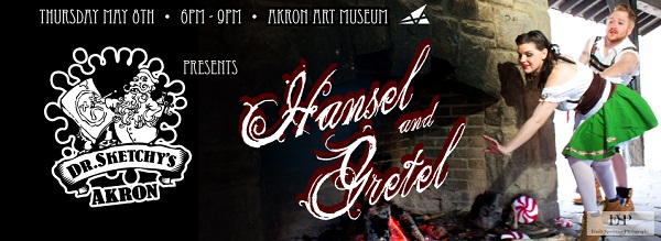 In January 2015, Dr. Sketchy’s Akron will solicit works inspired by or created at any of the “Year of Grimm” life drawing events for a traveling, fairy tale-themed exhibition. Stop by this week to sketch Hansel and Gretel, and get involved with “Year of Grimm.” Visit their website for more info on future events.