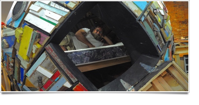 Cle artist Loren Naji rolled out of town in early September, towing his large hollow spherical sculpture EMOH, constructed from pieces of demolished homes. His goal: to live in it for a month to draw attention to homelessness and try for the $200,000 Grand Rapids ArtPrize..