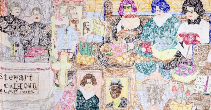Alfred McMoore (1950-2009) was an Akron resident who had schizophrenia. He was also a dedicated artist who worked every day on the giant pencil drawings he created on scrolls of paper five feet high and as long as fifty feet. Although there has been a surge of interest in this type of “outsider” art (art created by untrained individuals often outside the mainstream of society), McMoore’s work was difficult to show because of their size.