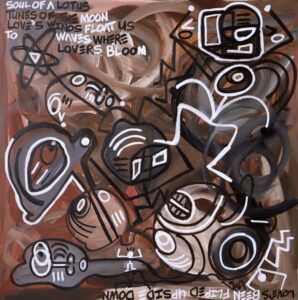 “This festival celebrates courage, reflecting the personal journey I’ve been on for quite some time,” says Flowers in the Mandel Opera & Humanities Festival press release. “Many choices I made in my childhood led to consequences that were not a result of my being a ‘bad kid,’ but rather due to my inability to overcome negative peer influences and community pressures. This body of work represents an extension of my identity and self-worth. I had to learn to love myself, even when society labeled me as a menace and treated me accordingly. The colors in the pieces I created for this exhibition emerged organically; they chose me. I usually don’t work with earth tones or neutrals, but this time, the mediums — my tools of mass construction — were paintbrushes, oil sticks, canvas, and fashion. The colors arrived uniquely and unexpectedly.”
